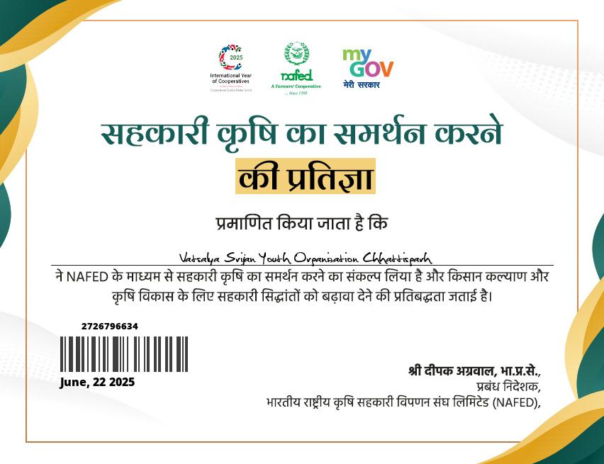Vatsalya Srijan Youth Organization, a non-government autonomous entity in Chhattisgarh, is dedicated to working toward social development, youth empowerment, and community welfare. With a strong presence in rural and semi-urban regions, we aim to create informed, self-reliant, and healthy communities. We bring together committed volunteers, professionals, and social workers to address pressing issues related to education, health, the environment, and livelihood.